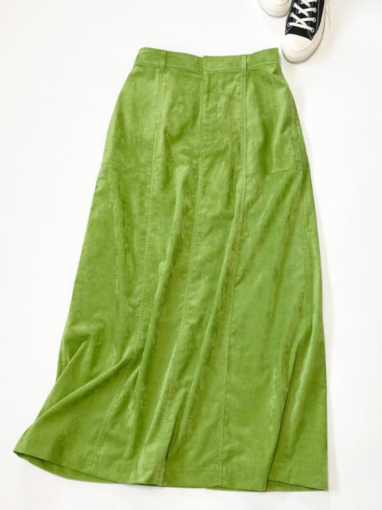 表情感のあるシャーベットのようなライトな別珍素材を使用したマキシスカートです。