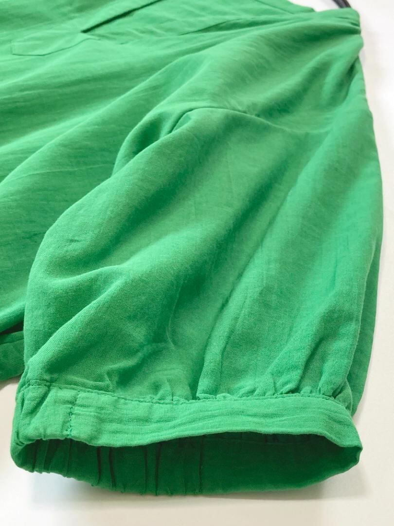 やや透け感のある薄手の素材感で夏場も涼しく着用ができ、5分袖丈なので秋まで長く着ていただけます◎
