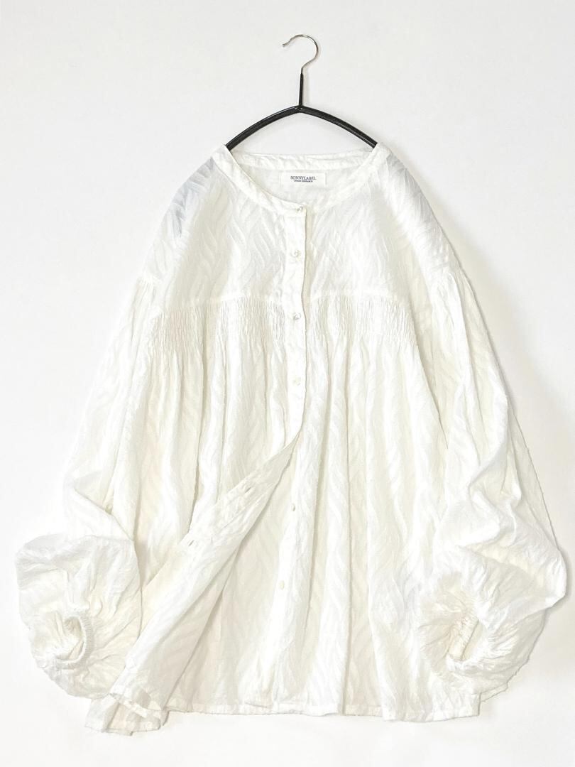 美品サニーレーベルふんわり24AWコットンリーフ柄カットドビーブラウス♪