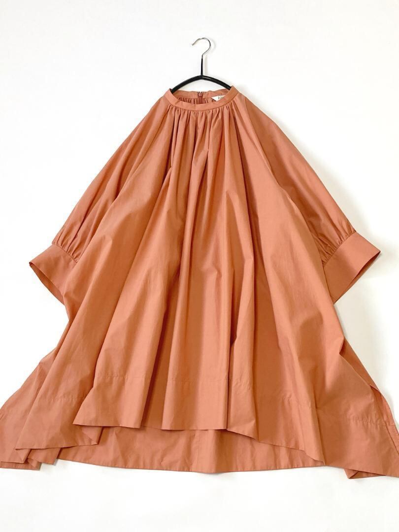 首元にたっぷりとギャザーを寄せて、胴回りに生地をもたせた一枚です◎